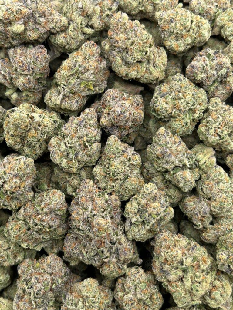 Velvet Gushers, also known as “Velvet Gushers,” is an indica dominant hybrid strain (70% indica/30% sativa) created through crossing the potent Red Velvet X Gushers strains. This delightful combination creates the ultimate delectable child strain with an amazing flavor and soothing, happy nighttime high. The taste of Red Velvet Gushers is the perfect tribute to its heritage, with a sugary sweet red velvet cake taste accented by creamy berries and bright cherries. The aroma is almost the same, although it has some light touches of woody pine and zesty citrus to it, too. The Red Velvet Gushers high will wash over you quickly, filling you with a lifted sense of happiness that puts a big smile on your face and leaves you feeling creatively inspired. As your mind is activated and boosted, your body will begin to settle down into a deep relaxation that helps you to feel settled without affecting your mental energy levels in the slightest. With these effects and its high 23-24% average THC level, Indica Dominant Hybrid – 70% Indica / 30% Sativa, Red Velvet Gushers is often suggested to treat appetite loss or nausea, depression or mood swings, chronic pain, chronic stress and headaches. This bud has dense, grape-shaped minty green nugs with dark leaves, long and thin orange hairs and a super frosty blanket of tiny, blue-tinted white crystal trichomes.
